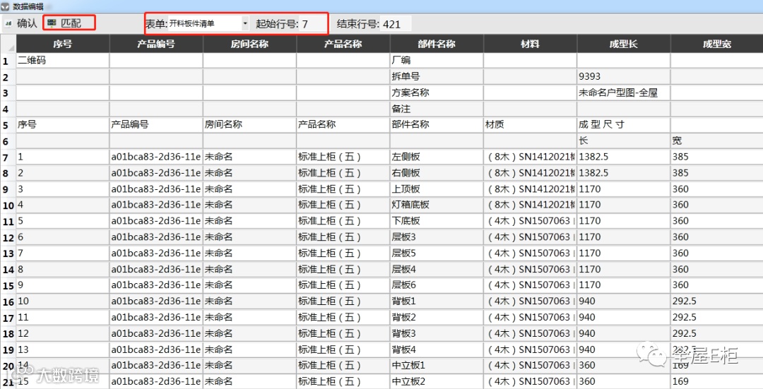 1.成品信息界面即导入表所有小板的数据