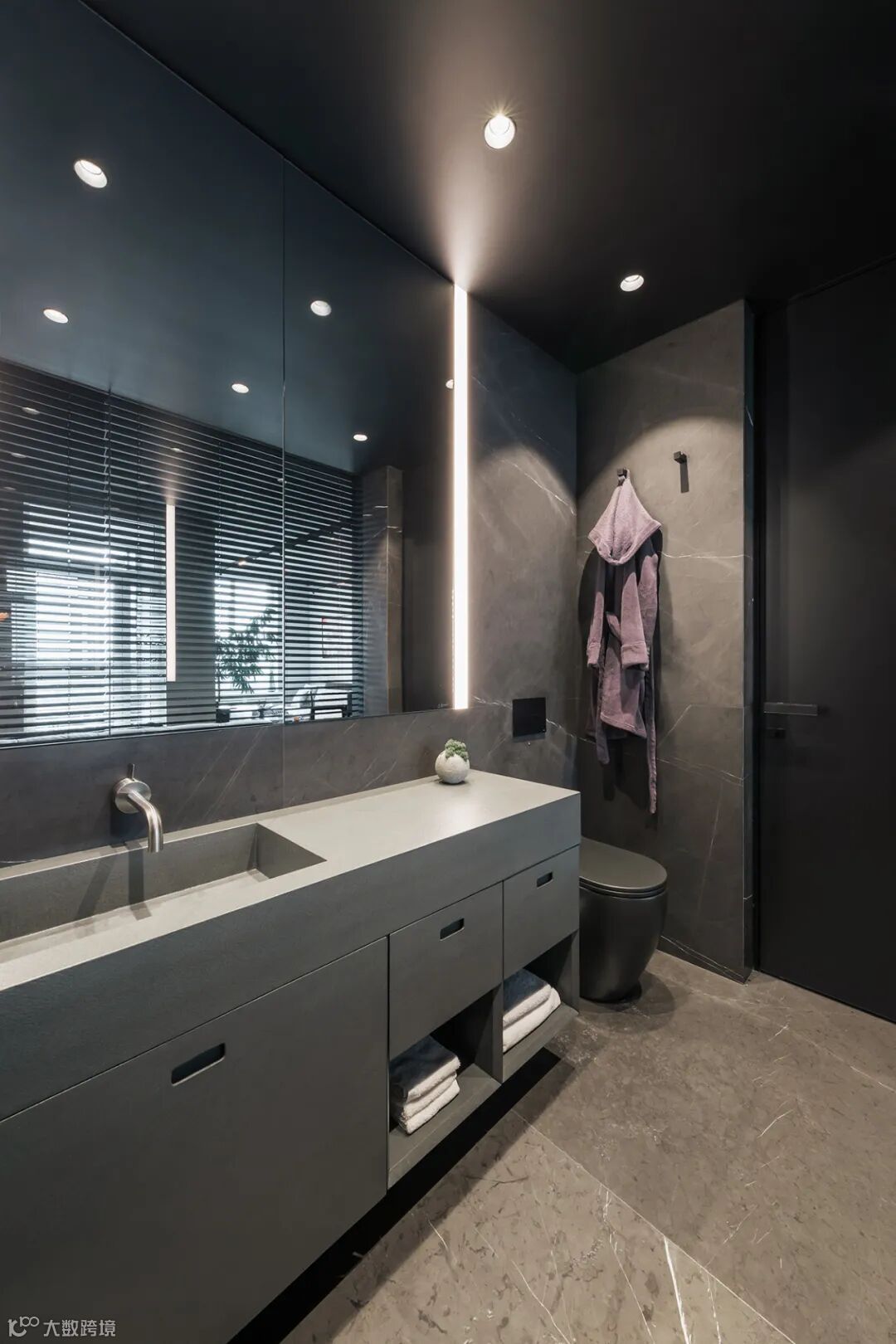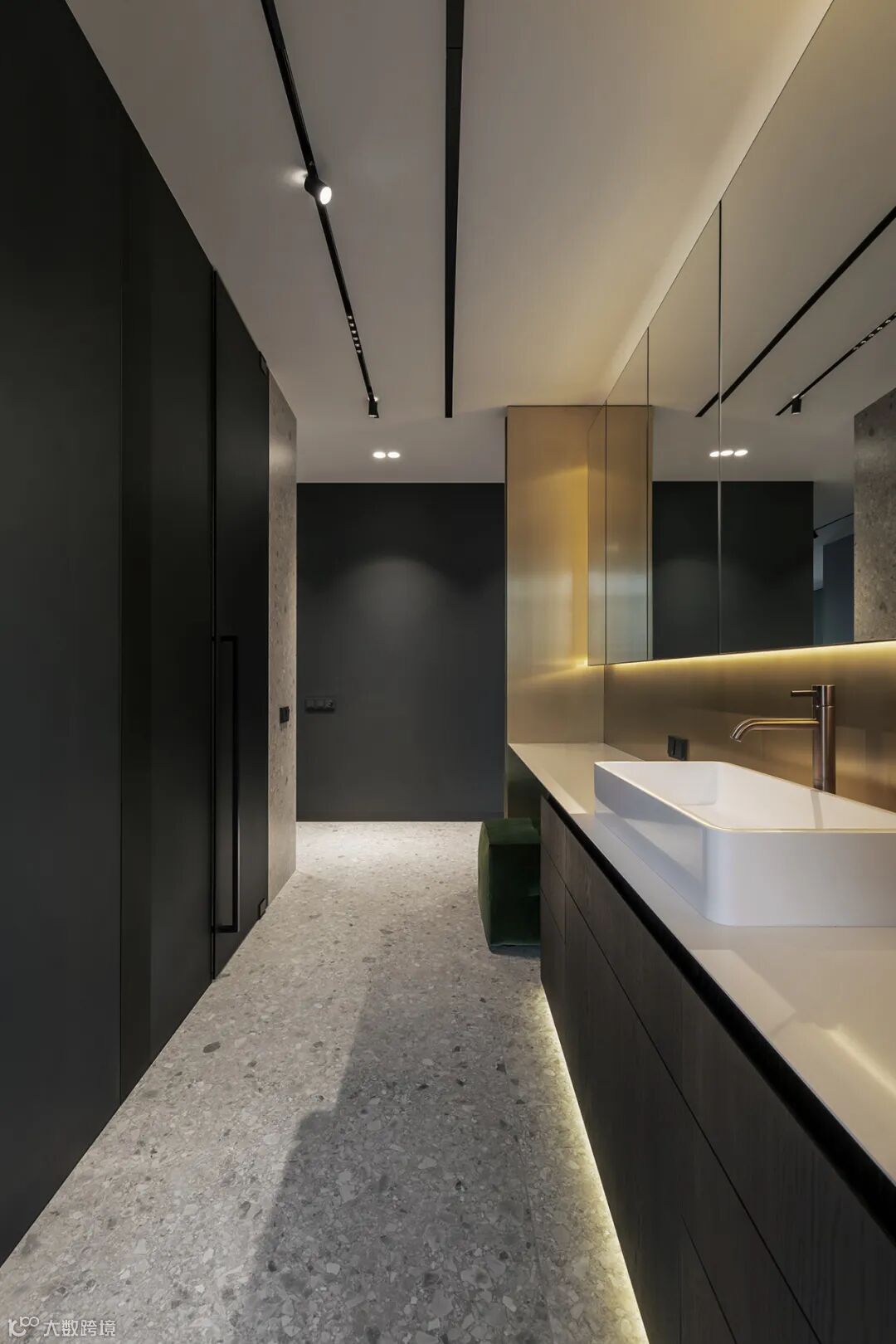 卫生间也进行了精确的分区,让人可以感受到生活的品质。暖色灯光与大理石的冷感相互协调,产生独特的化学反应。YoDezeen Architects擅长用自己的设计语言打造精致豪宅,形成了一个柔和平静的奢华空间。