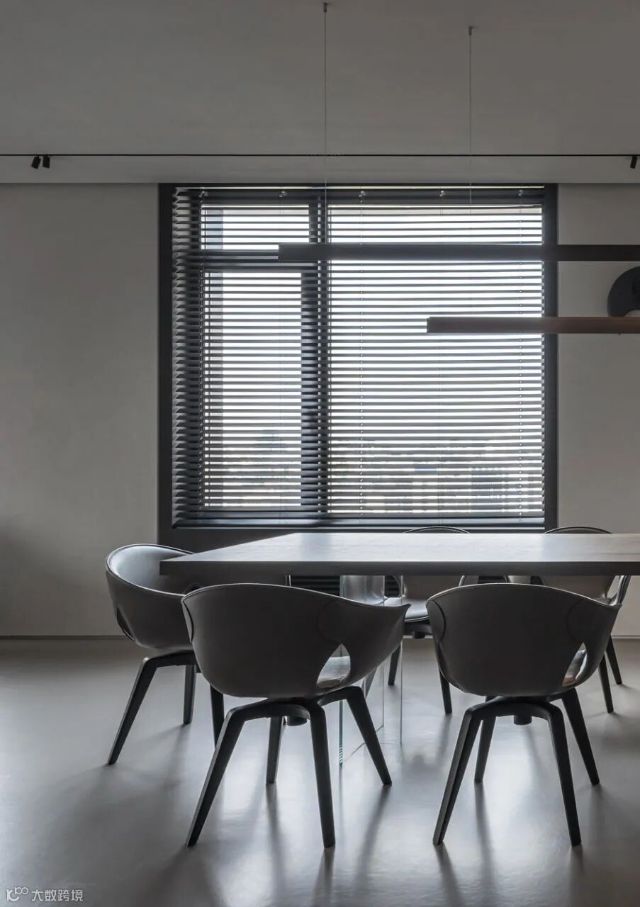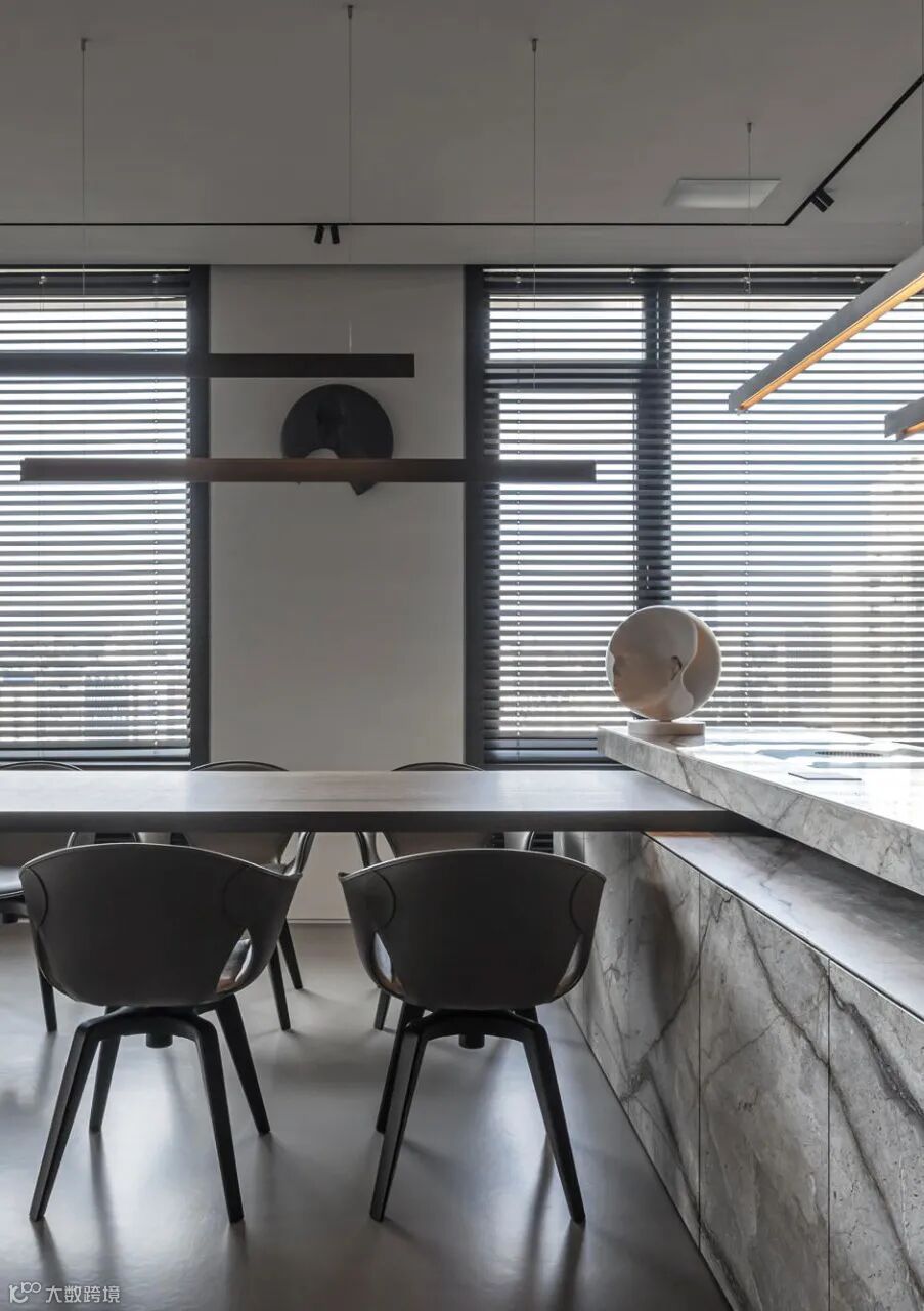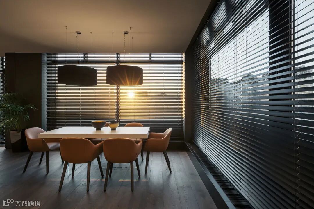 百叶窗为空间带来了明快的线条,明亮的光线透过它进入室内,为空间增添一丝温润与柔和。
