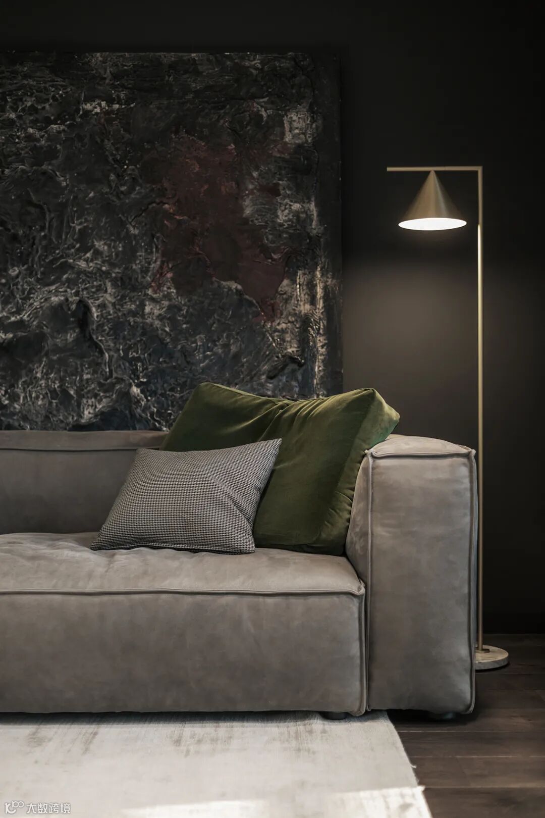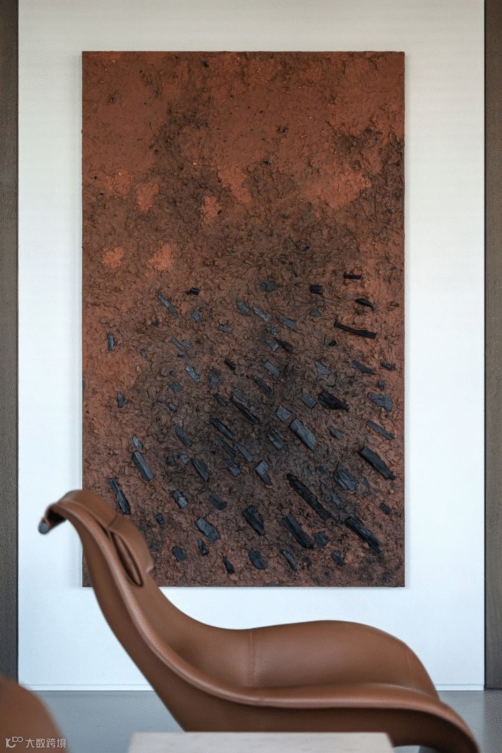 如烧尽的野火,亦如历史的尘埃。这幅作品色彩上与单人皮沙发对应,优秀的艺术总能升华空间。