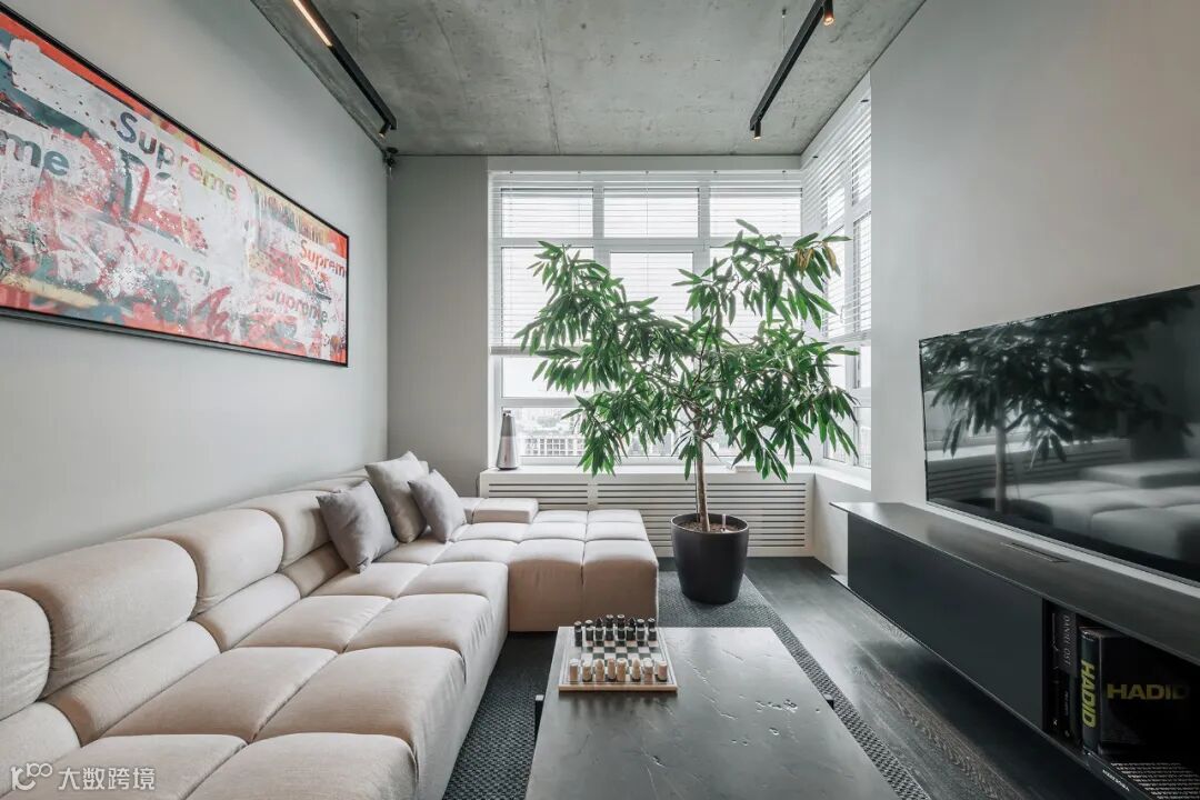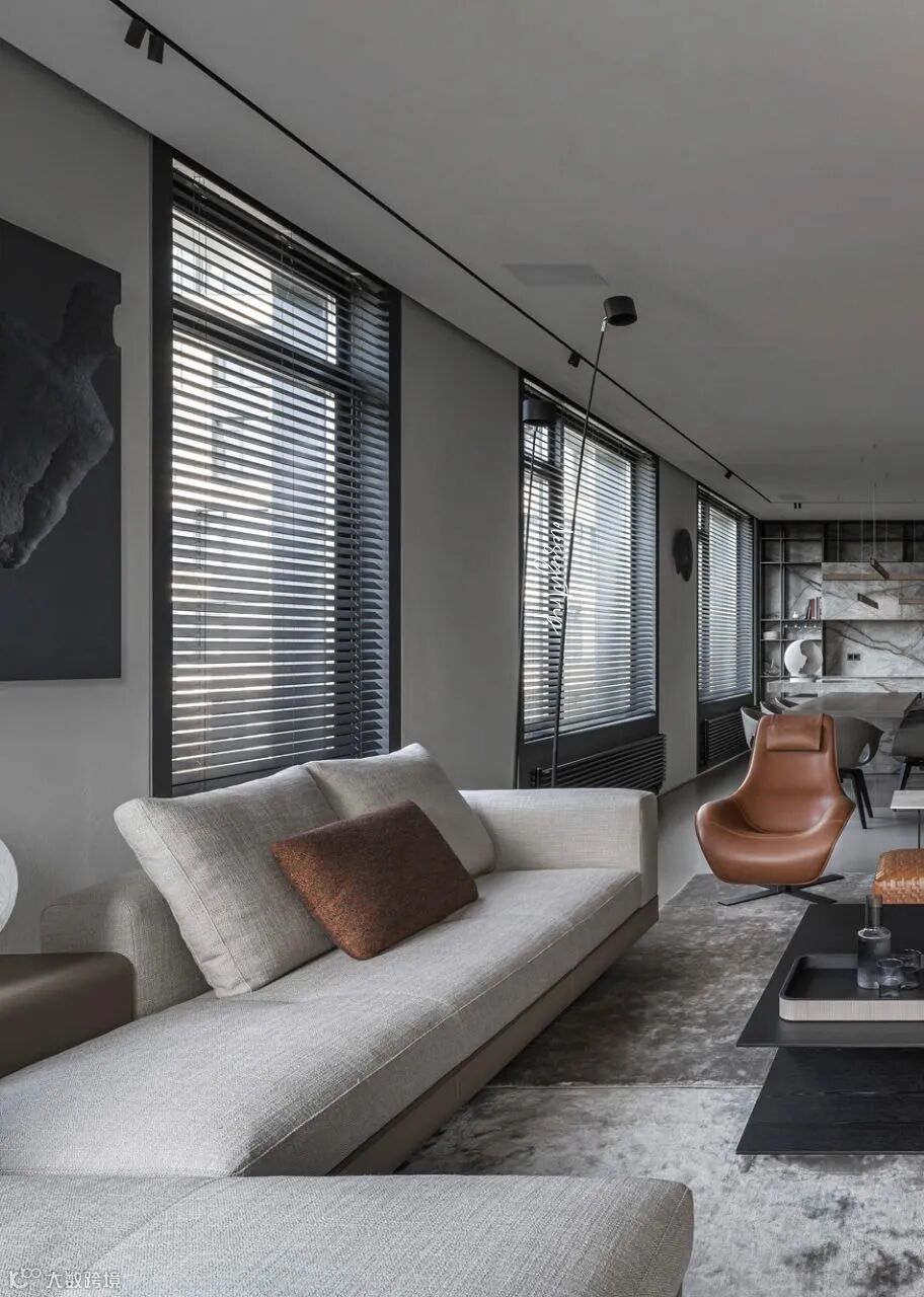 舒适的裸色以灰色为主,进行色块的叠加与配合,和谐布置的家具,让人感受到空间的温暖与舒适。
