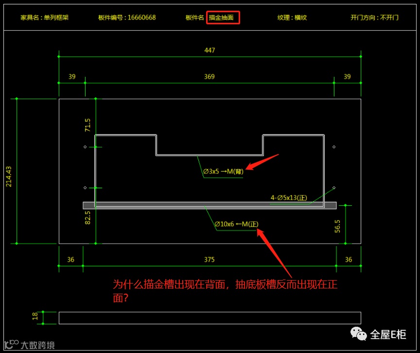 Q554:为什么描金槽出现在背面,抽底板槽反而出现在正面?假如板材有分见光面的话,拉槽就会搞错。