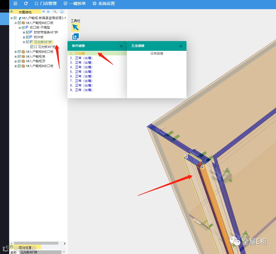 A551:这个橙色的是指一些设置了不碰撞出槽的板件有碰撞的提示。只是方便查看一下,并不是错误提醒。