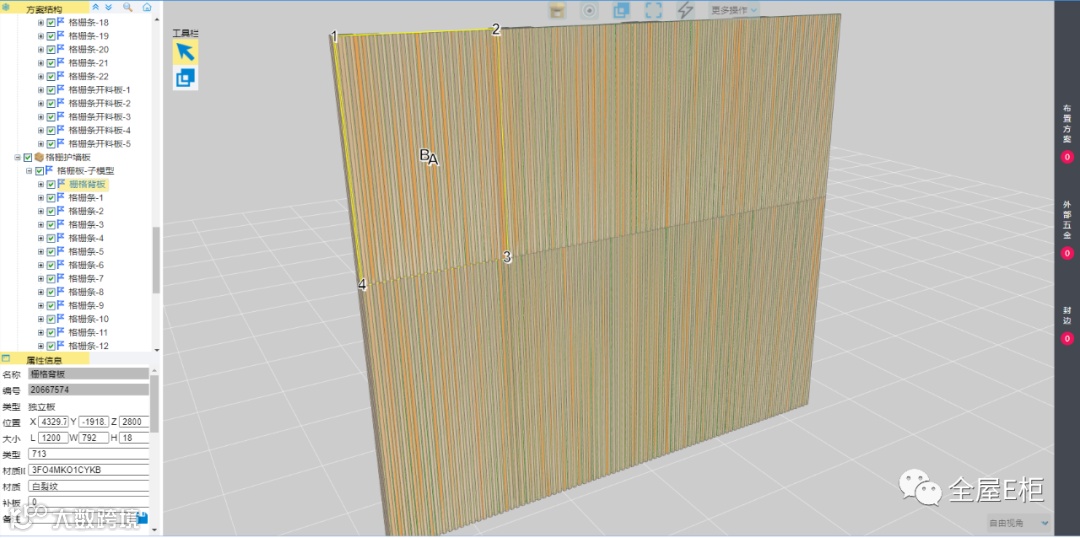 5.1 使用栅格条与背板碰撞开槽(与常规柜子背板开槽形式相同,受拆单后台“开槽预留宽”和“开槽预留深”影响)。