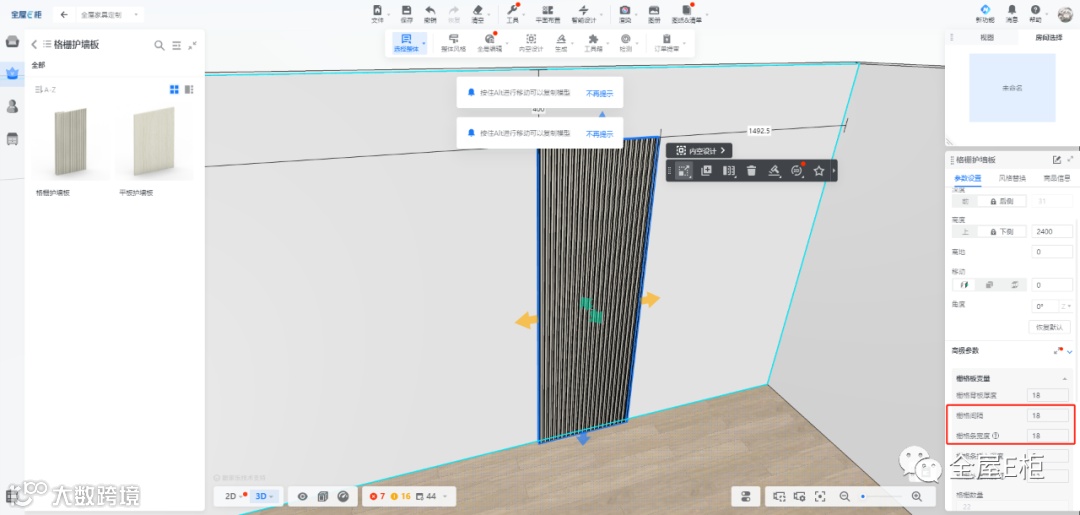 模型位置路径:产品库-护墙板-格栅护墙板