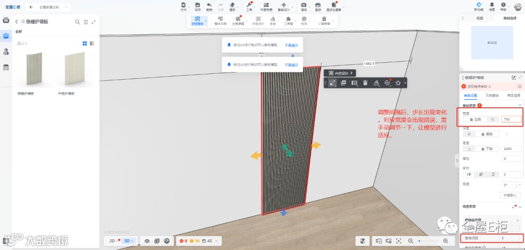 1.模型宽度可调整范围为100-1200,但范围内调整宽度会以“栅格间隔”+“栅格条宽度”为一个步长调整。调整这两个参数也会对宽度有所影响,需要注意。
