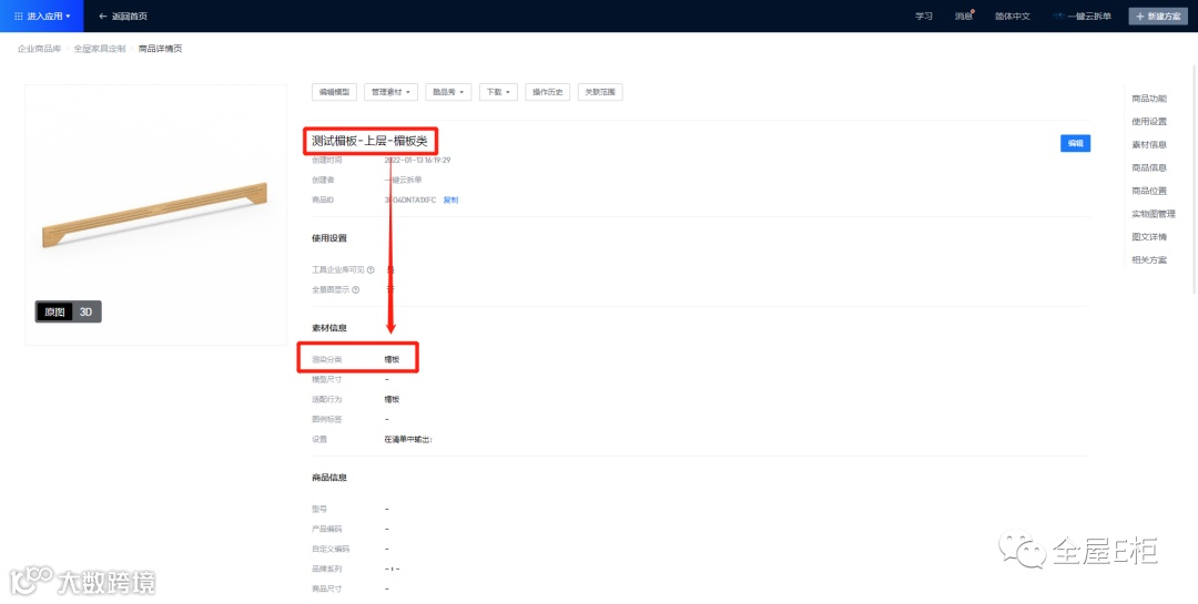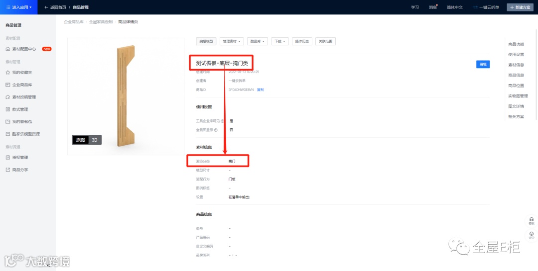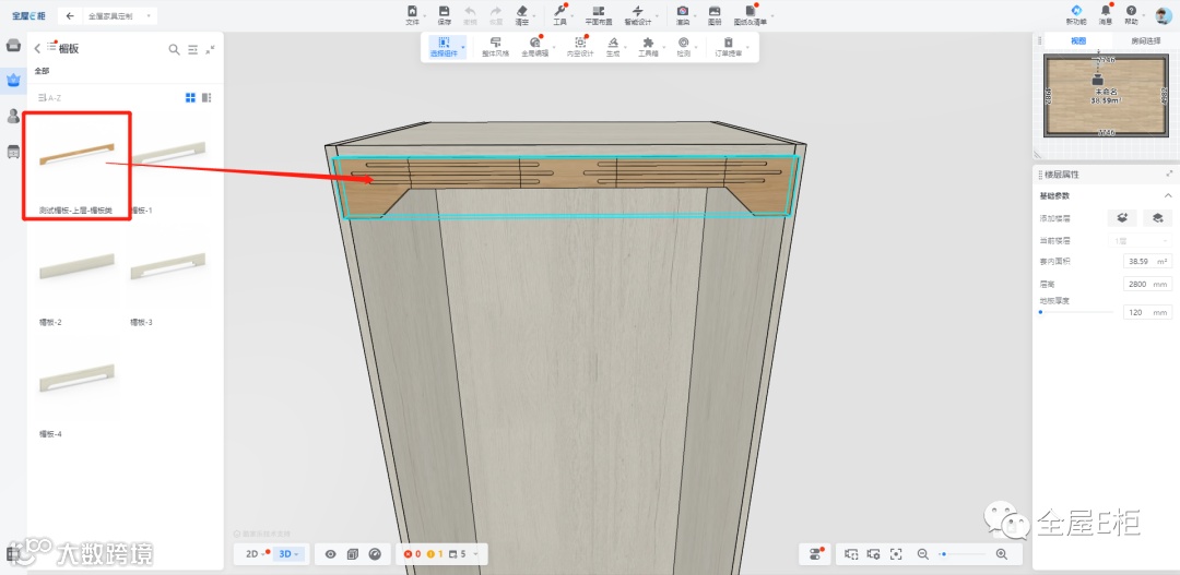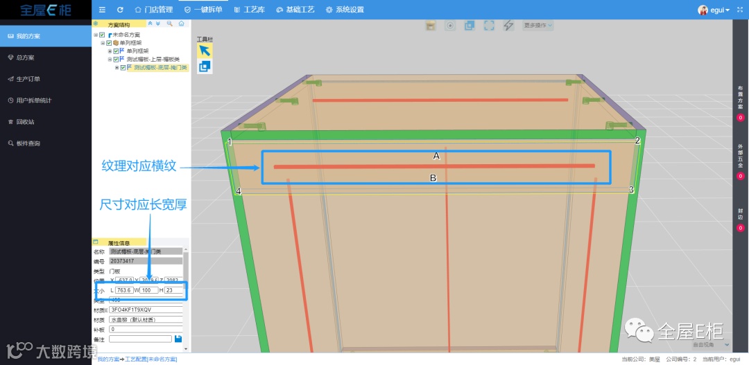 前端设计方案中应用上层的楣板模型,后端进入审核工艺检测尺寸及纹理方向