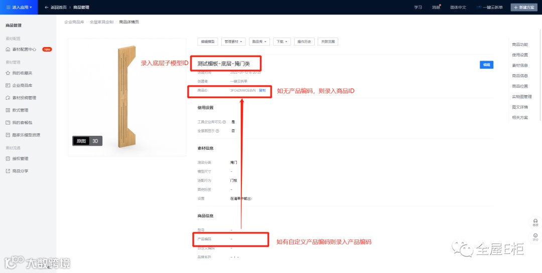 录入底层子模型ID至造型类