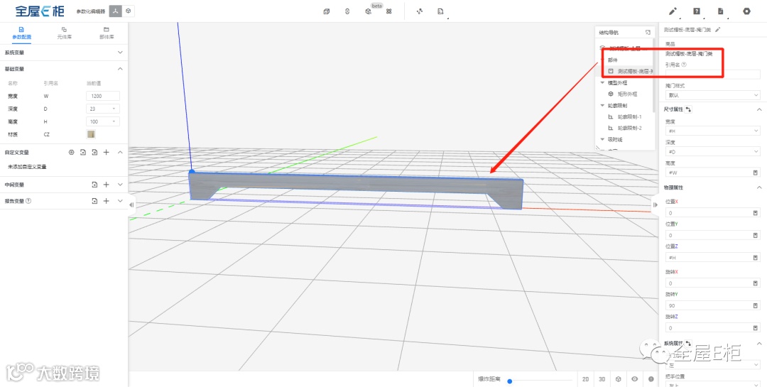 同时按门板竖向方式建模,先建立下层子模型(注:该模型作为子模型,前端不显示,不作为正常楣板使用)