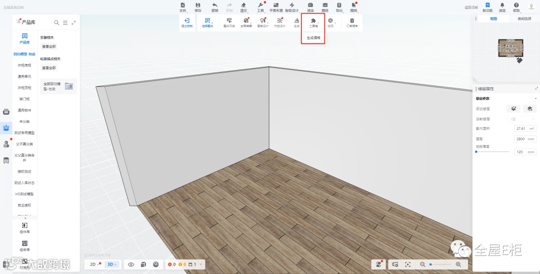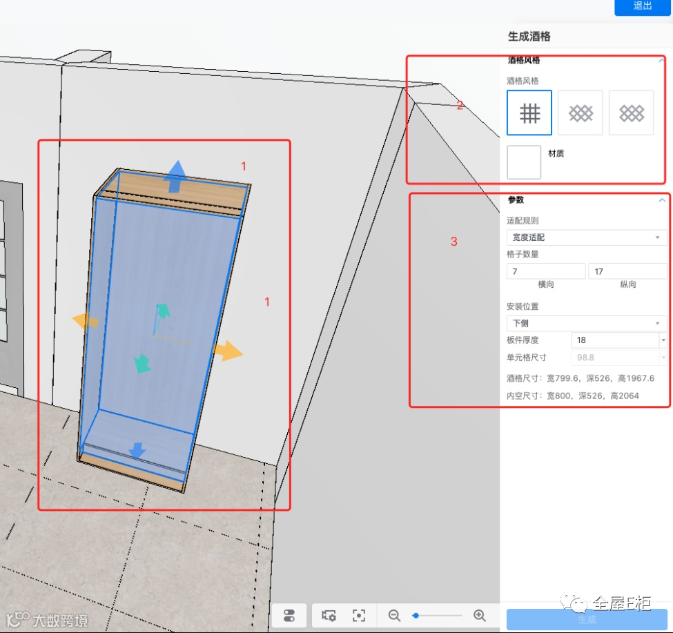 前端工具入口:全屋定制/橱柜定制-顶部定制工具栏-小程序-生成酒格