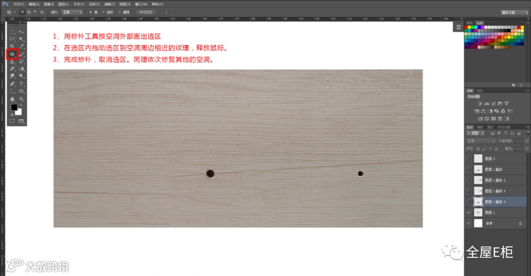 第一步04:校正木纹板四边 选区中间校正部分,拷贝一个图层。