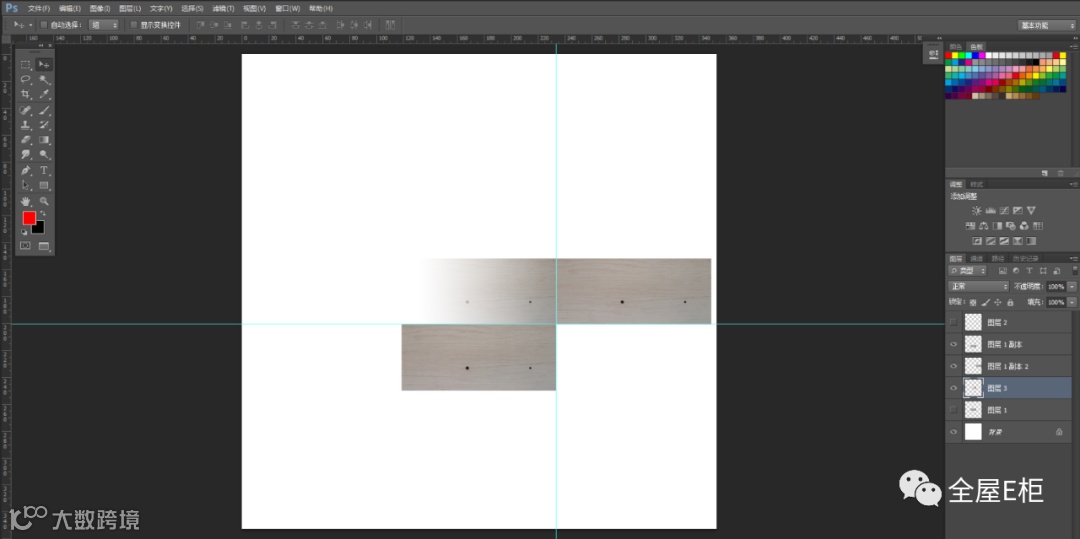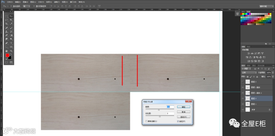 第二步03:校正四边颜色明暗 拷贝两个图层拼接下,找到明暗和色差。