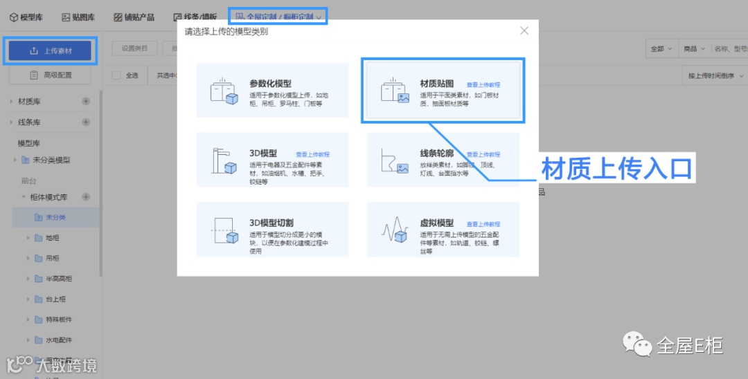 商家后台 →全屋家具定制/橱柜/门窗→材质贴图