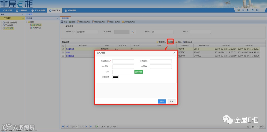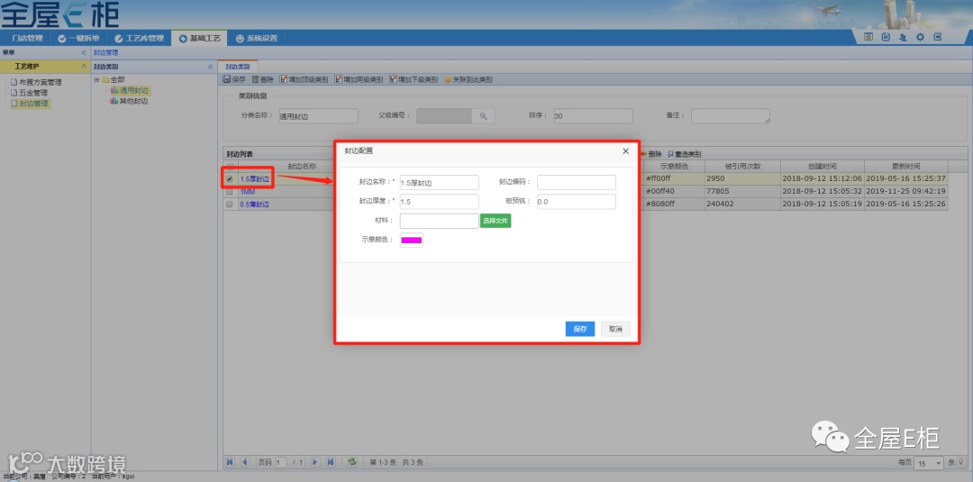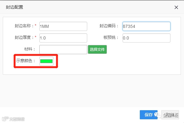 2.3.5示意颜色:示意颜色在修改工艺界面,在板边显示对应配置的封边颜色,便于识别。
