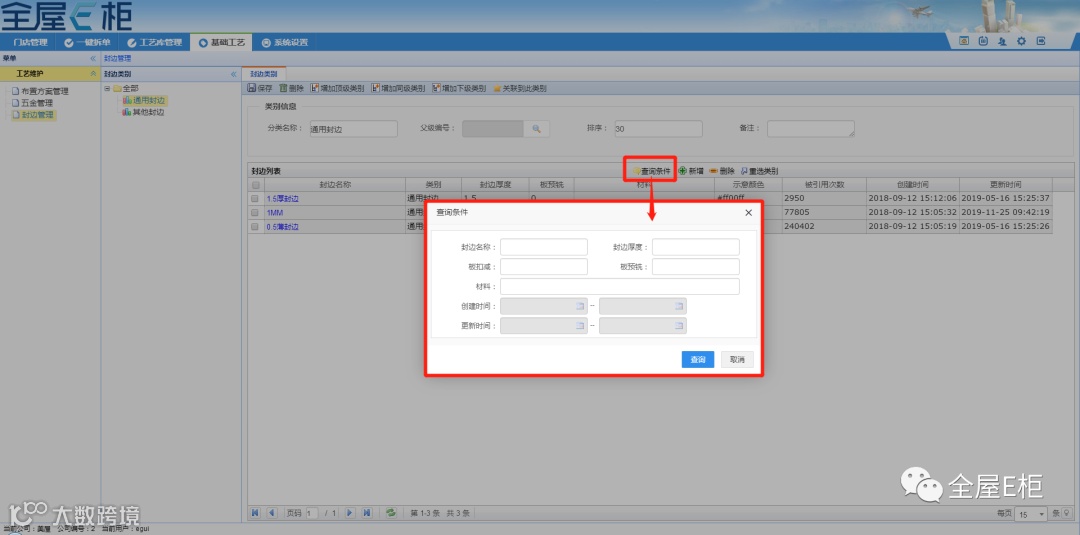 1.3.1查询条件:如果封边信息较多时,可以通过查询条件进行查找。