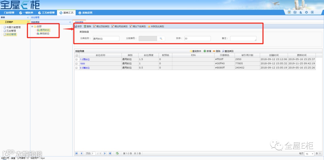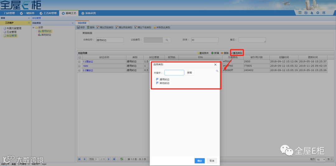 1.3.3重选类别:勾选封边后可重选封边的类别。