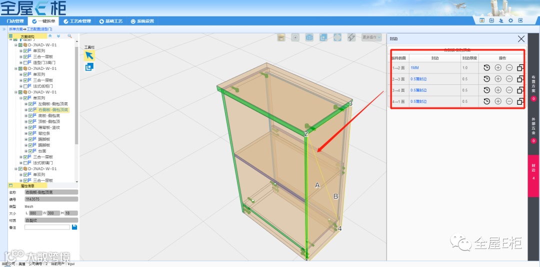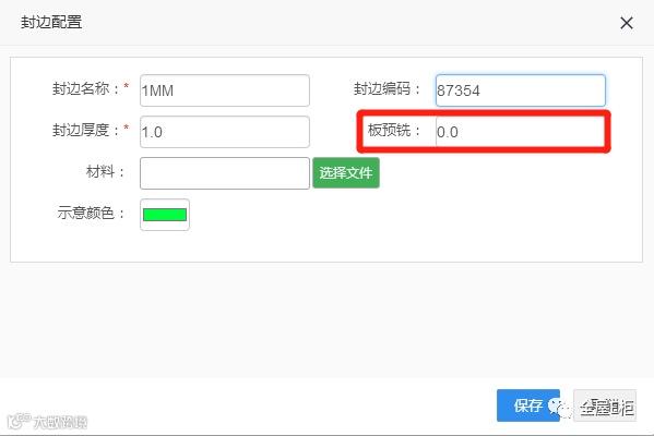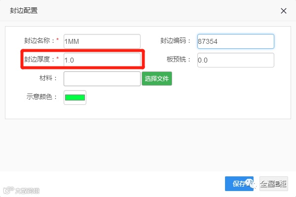 2.3.3封边厚度:拆单输出的开料尺寸时需扣减封边的厚度数值。