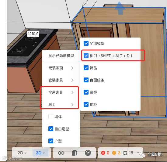 3.一键显示隐藏:接入全屋家具/厨卫——柜门