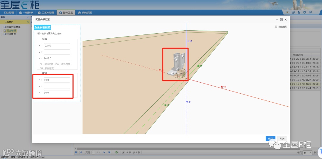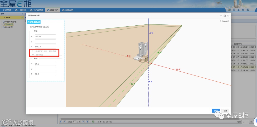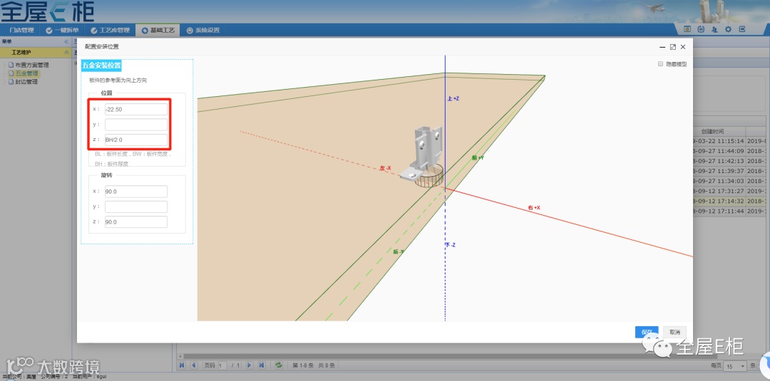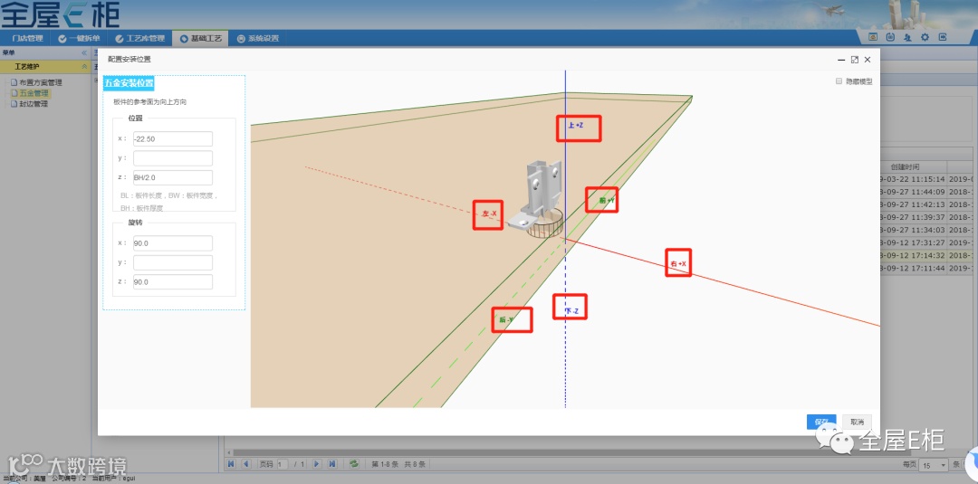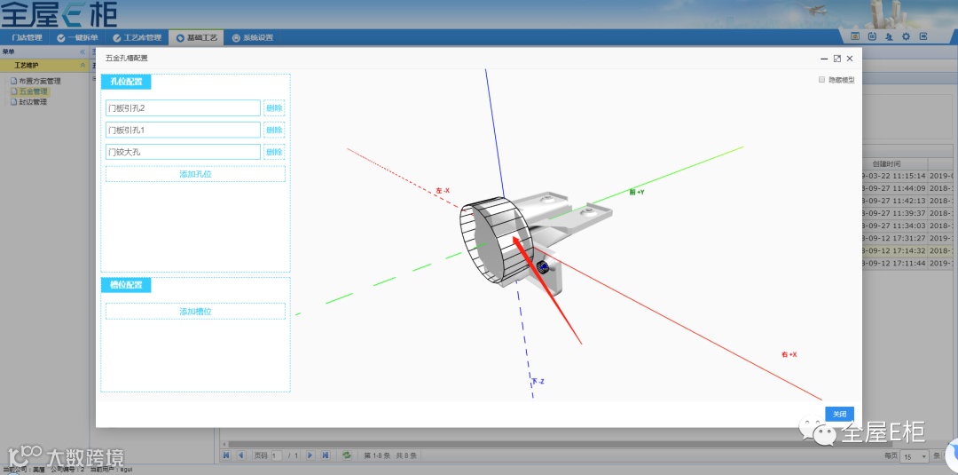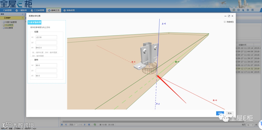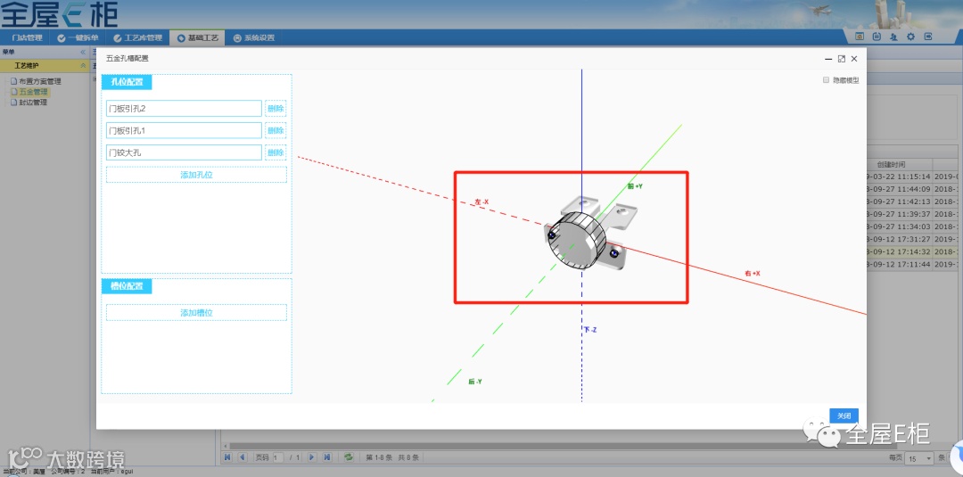 在配置五金的孔槽时,定义五金的坐标原点。