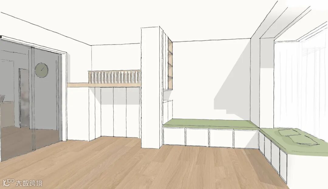 比如,这里有进深15cm的空间,也不能放过,要定制一个异形小柜子。