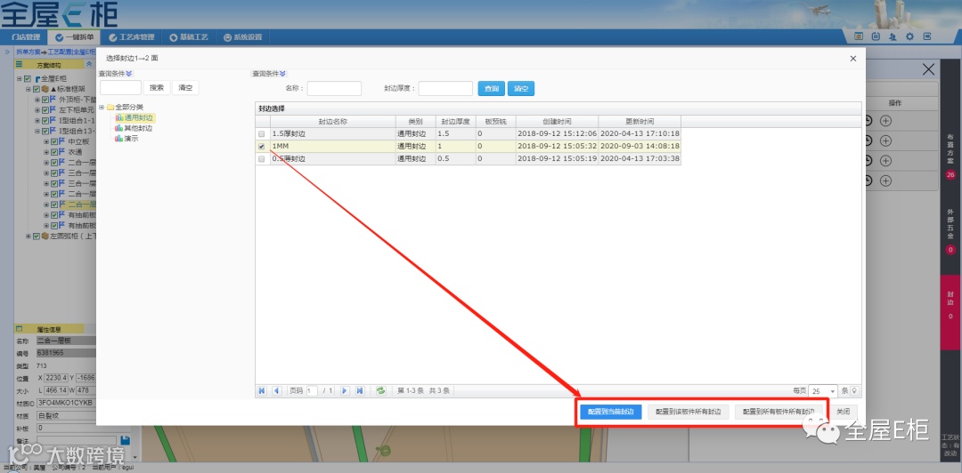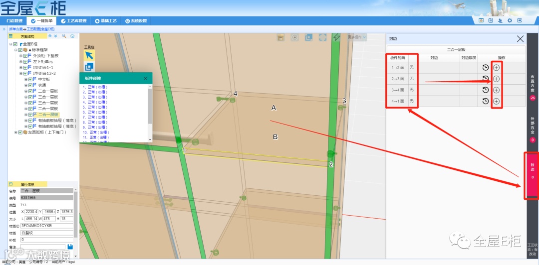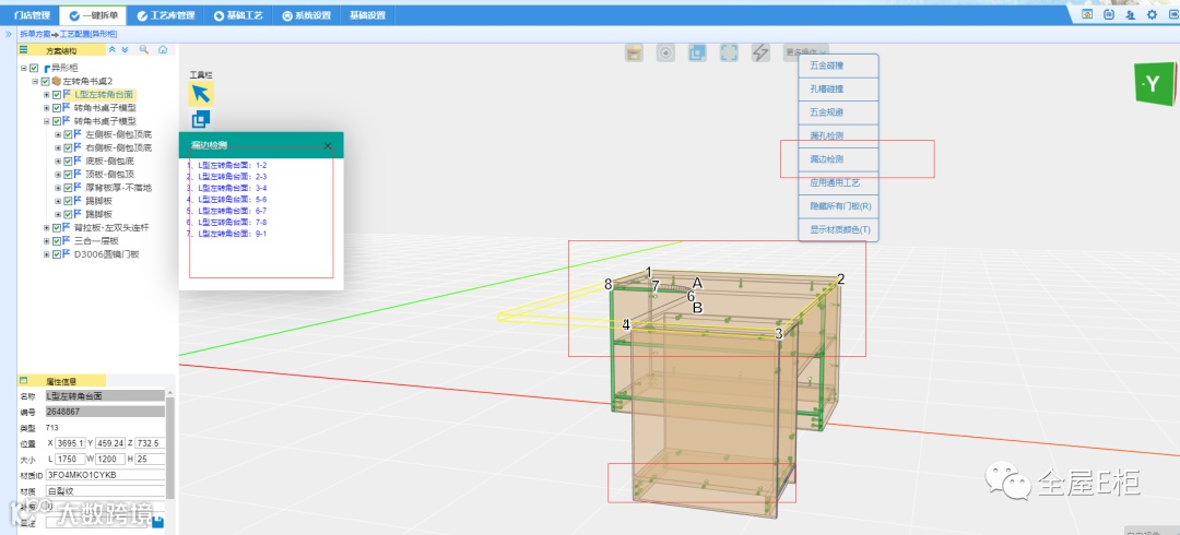 2.配置材质信息:检测显示没有封边信息的板件及对应边。
