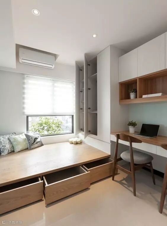 为了尽可能利用空间,提升储物收纳功能,榻榻米还可以出现在家里任何可能的角落,而且做得好的话也会是一个绝佳的休闲场所。