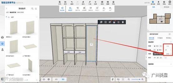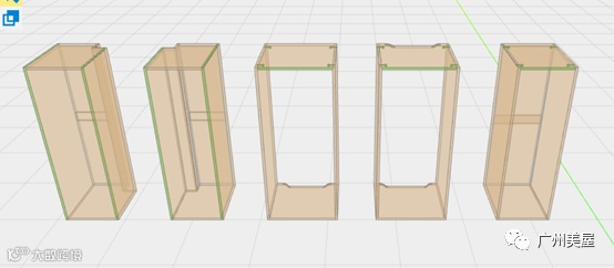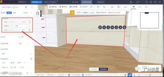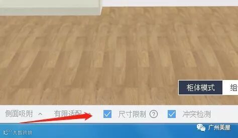 4.模块内是可以自动适配深度的。(注:如果放好单个板件后,再去修改模块深度,板件是识别不到深度的,要重新拖动才能识别模块深度)