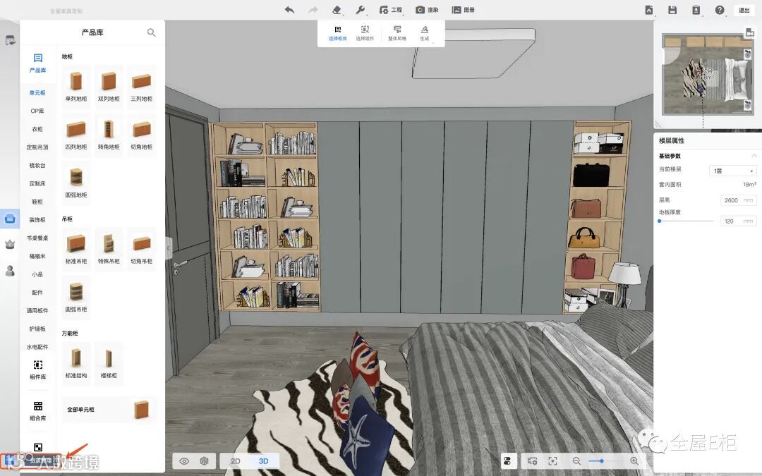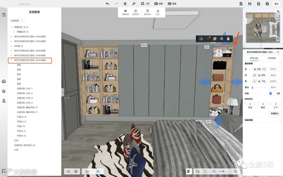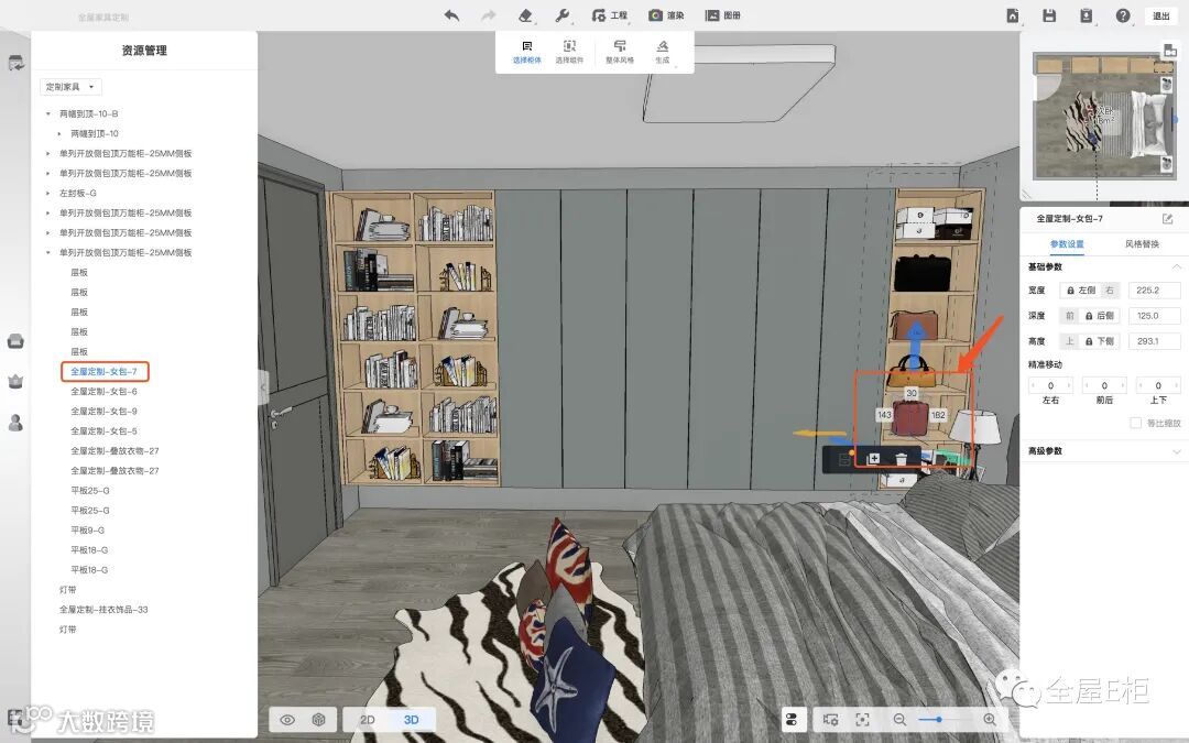 同样选择了全屋定制-女包-7,3D场景内即可显示我所选中信息对应的女包模型: