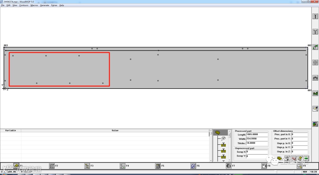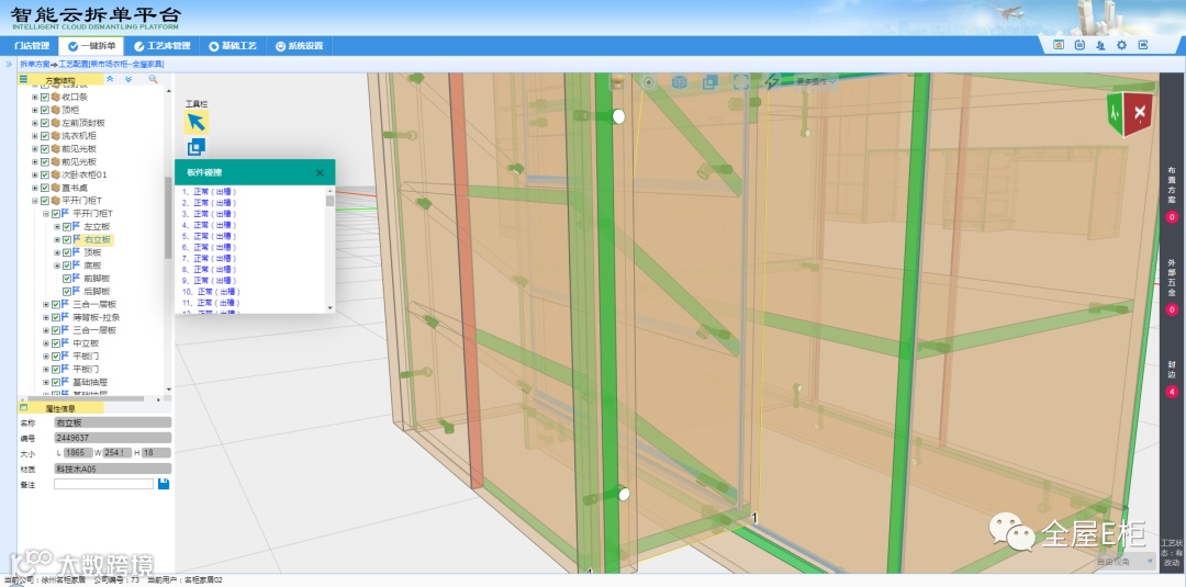 1.3重新拆单输出:确认审核工艺中的工艺信息正常,重新拆单输出确认,斜层板的三合一铰链孔是生成在右立板上。
