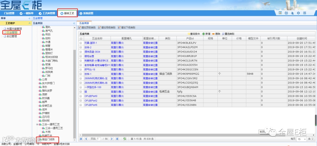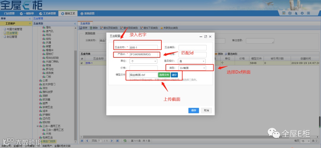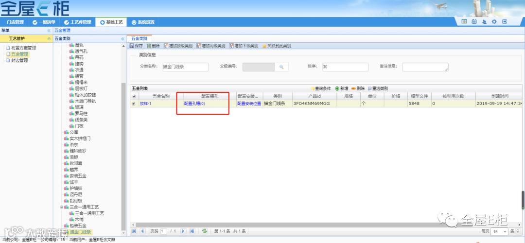 进入后台-基础工艺-五金管理-新建或选择描金线所在目录