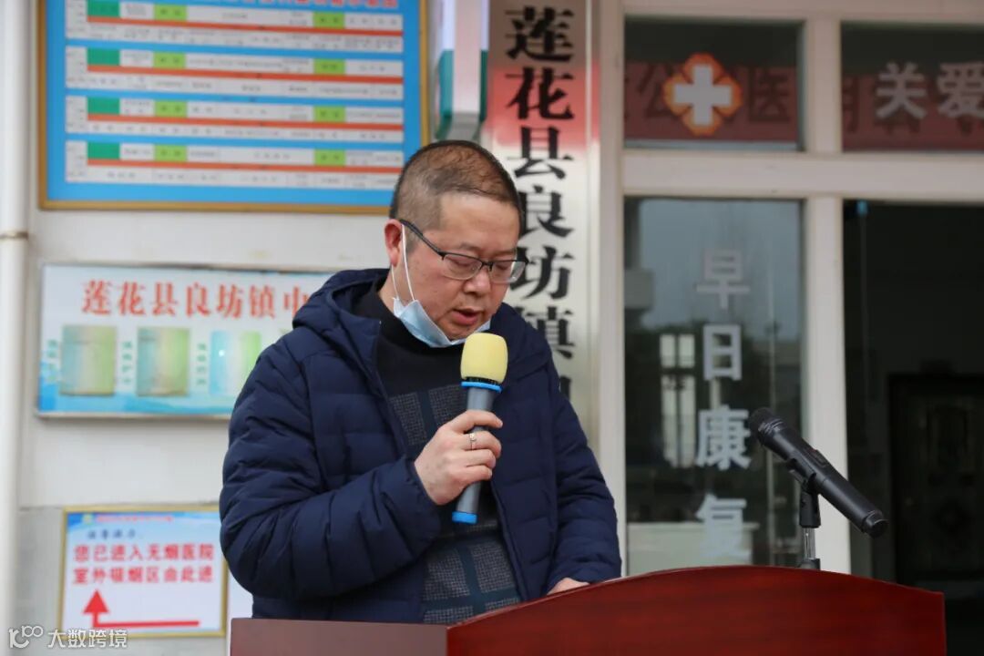 莲花县良坊镇中心卫生院院长李春山代表受赠医院致答谢词,仪式现场还向参加仪式的尘肺病患者发放了氧气袋并讲解了使用方法。