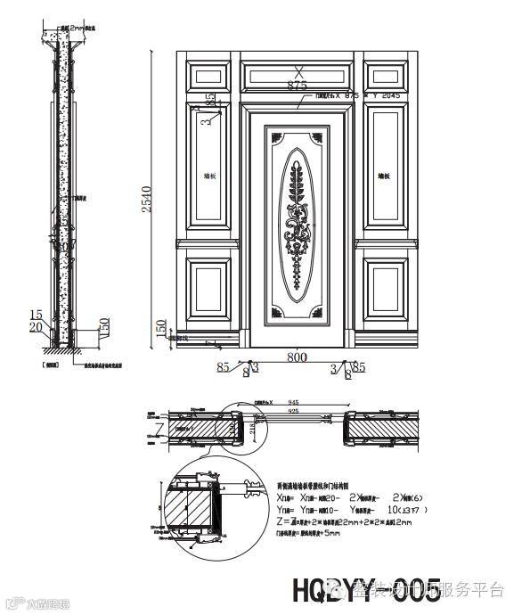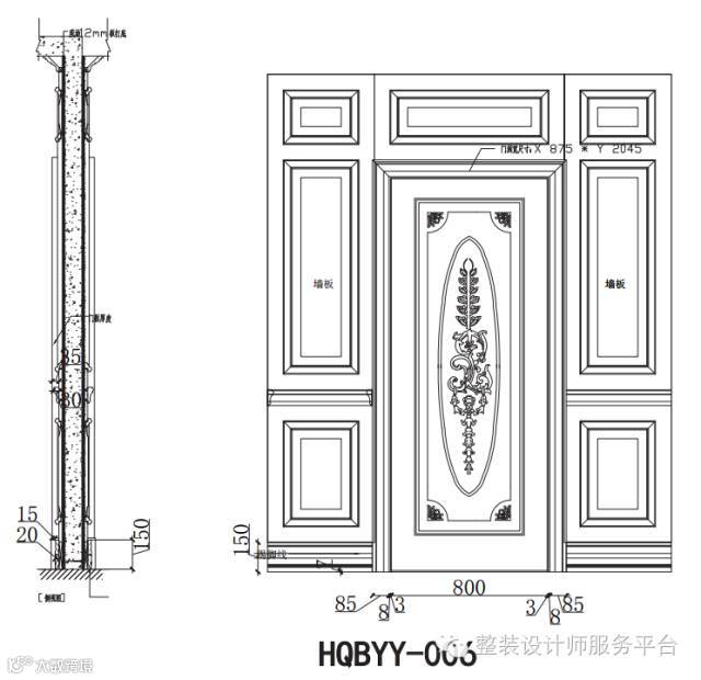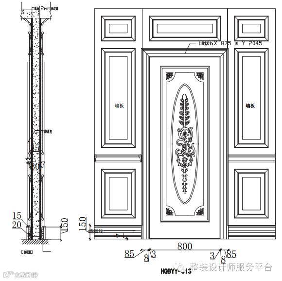 护墙板主要由墙板 + 装饰柱 + 顶角线 + 踢脚线 + 腰线几部分组成。