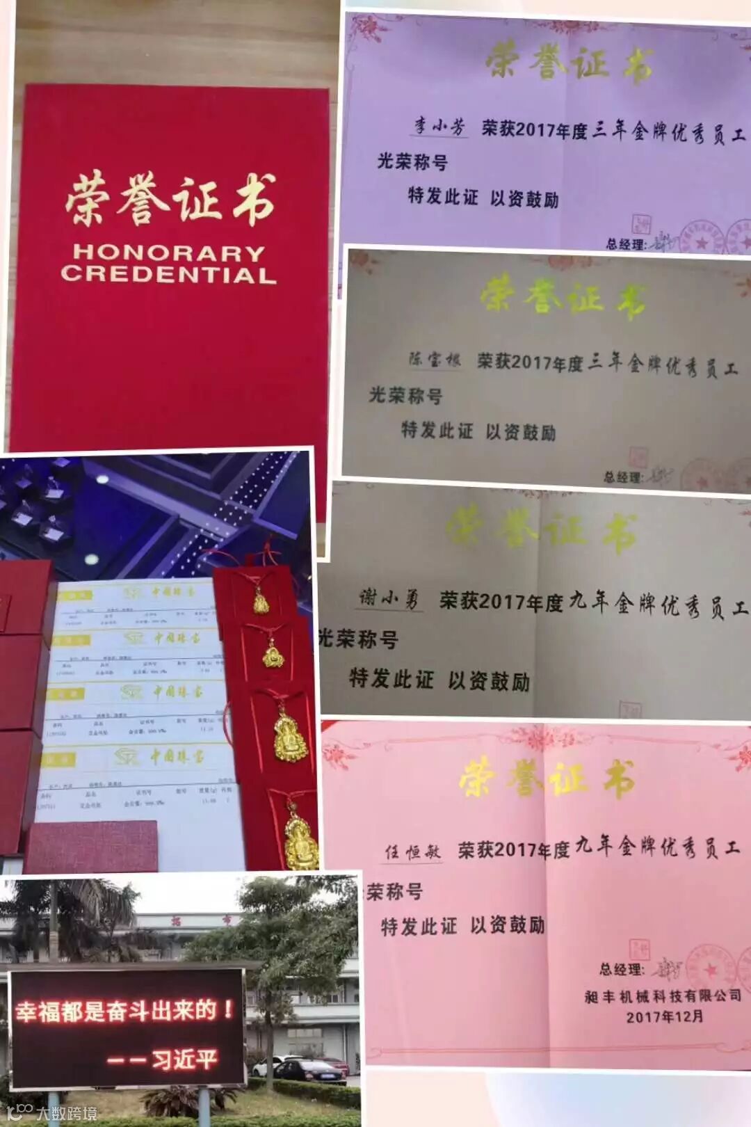 昶丰老总分别给三,六,九年优秀金牌员工颁发金牌
