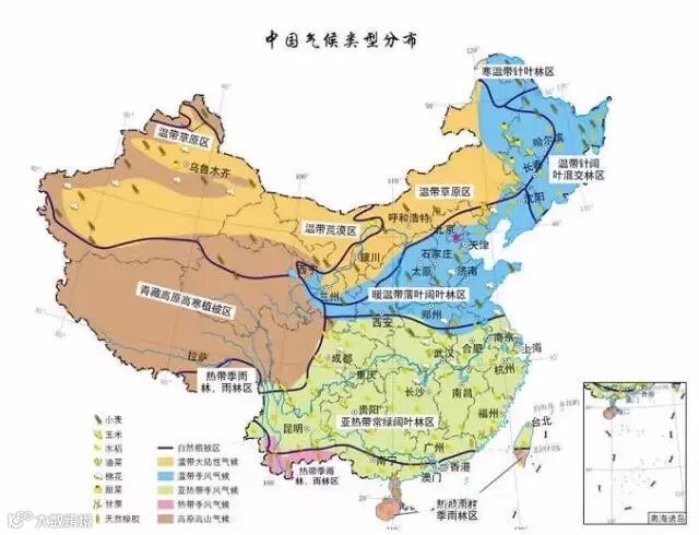 中国气候分布图