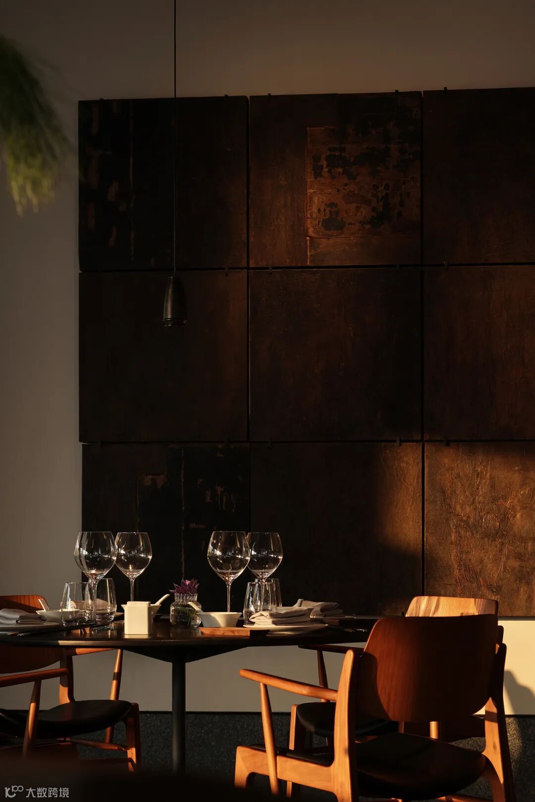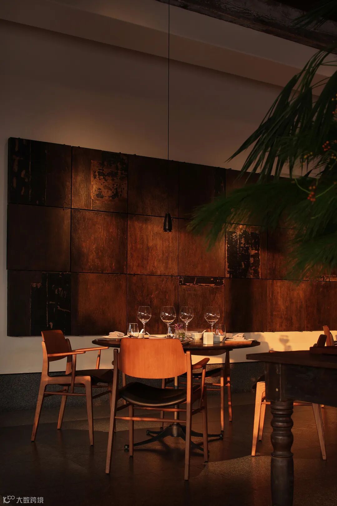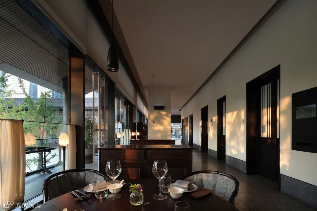室内材料的选择极具匠心,为空间倾注自然气息。木材与金属、石材的组合,呈现出一种未经修饰的原始之美。它们低调且克制,甚至趋近于极简主义风格,表达对自然的敬意,亦是对美食的尊重,让食客注意到,舞台上的主角始终是厨师与食物。