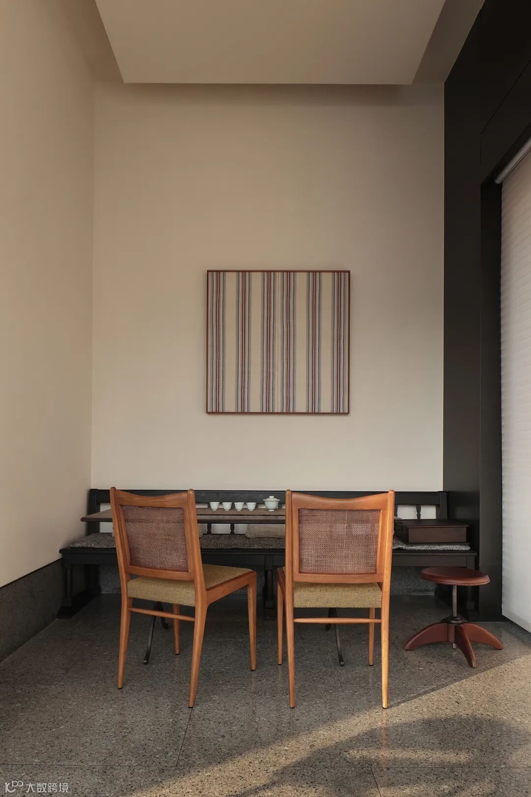 木饰面的出现,如同平静湖面激起的涟漪,划破了空间的规整与沉寂,加了更多的层次、色彩,抒写空间的情绪。