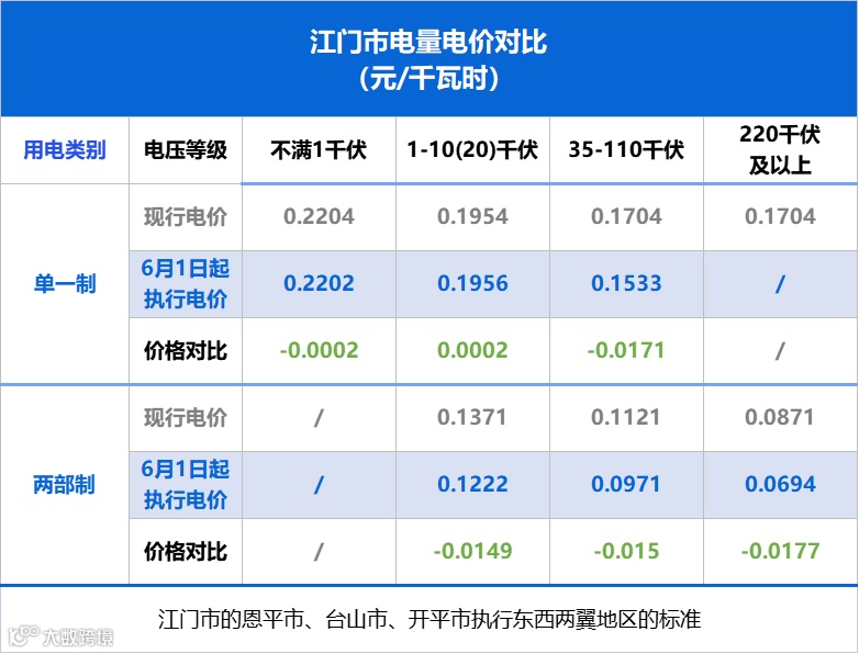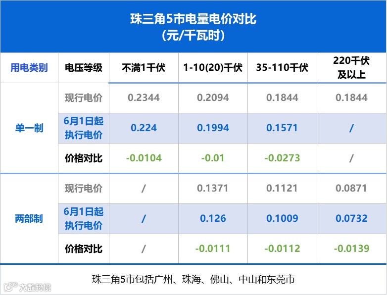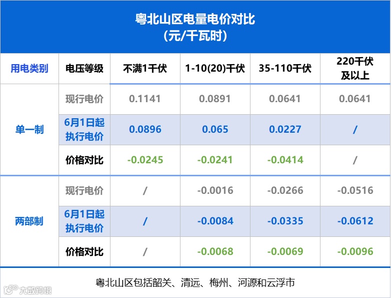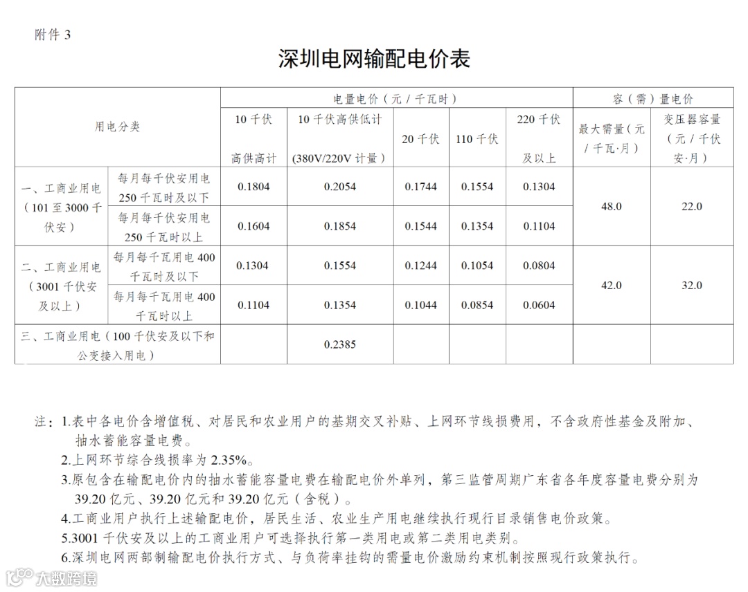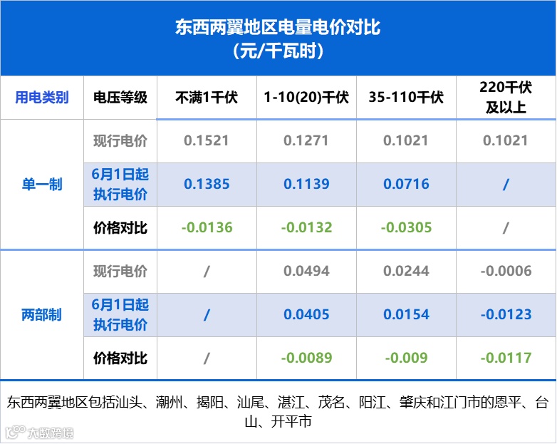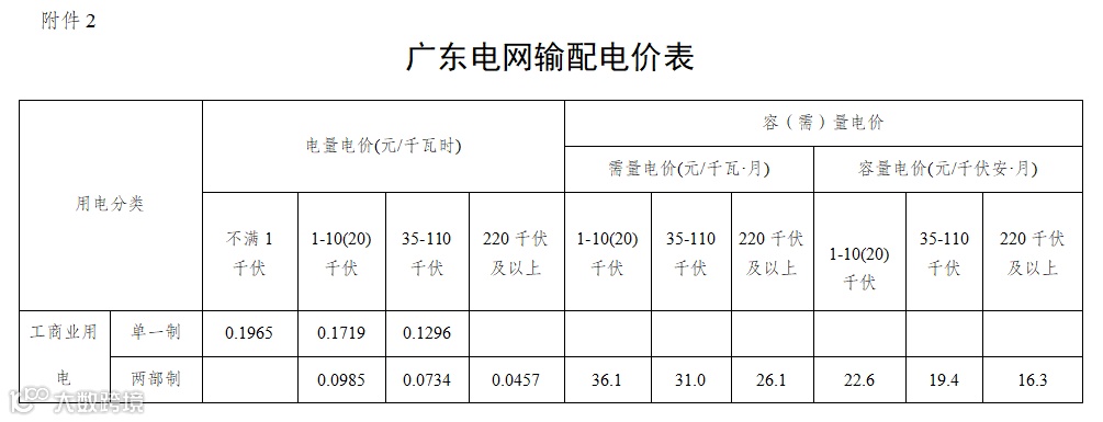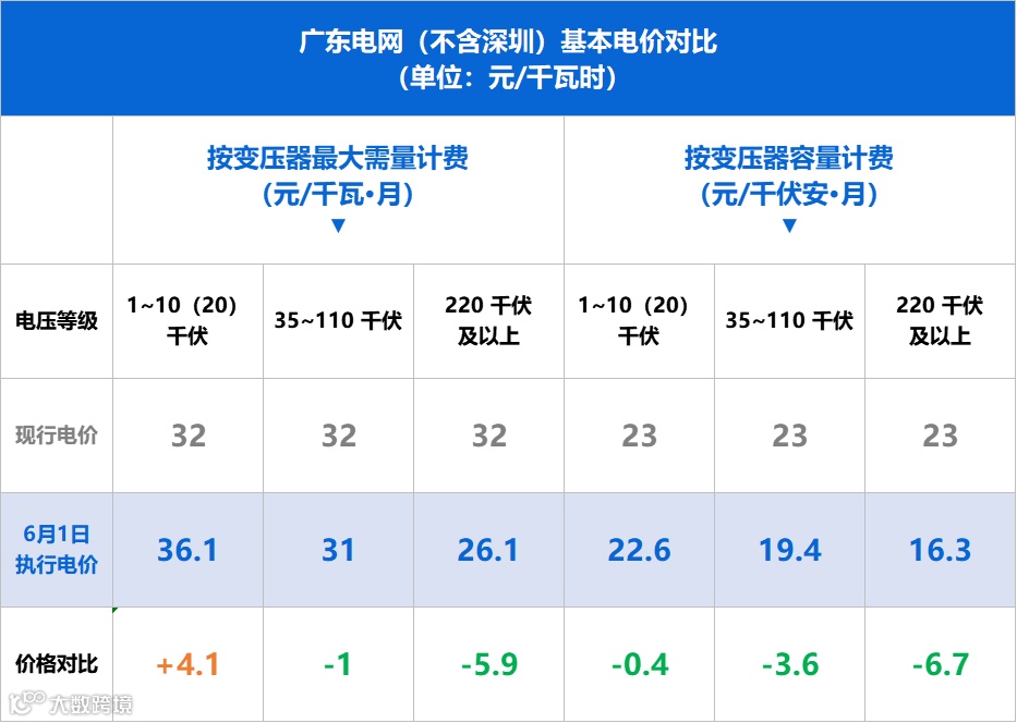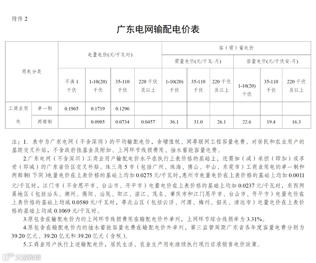 6月1日起,广东电网(不含深圳)地区及深圳执行输配电价如下: