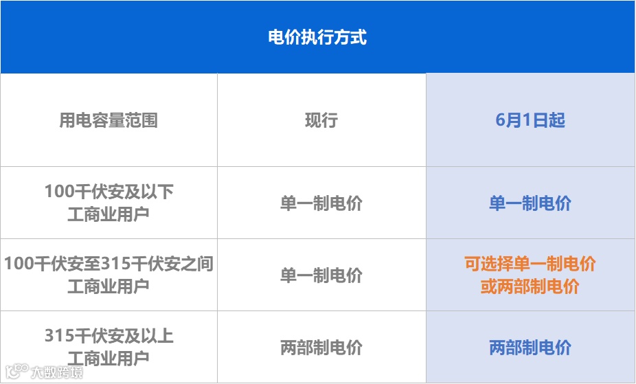 设置单一制和两部制两种电价方式,现执行单一制电价的用户可选择执行单一制电价或两部制电价。