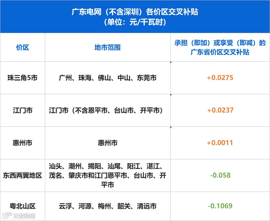 需要注意的是,上图中广东电网(不含深圳)输配电价表公布的是平均输配电价,广东电网(不含深圳)工商业用户输配电价水平在执行上表价格的基础上,还需加(减)承担(即加)或享受(即减)的广东省价区交叉补贴。