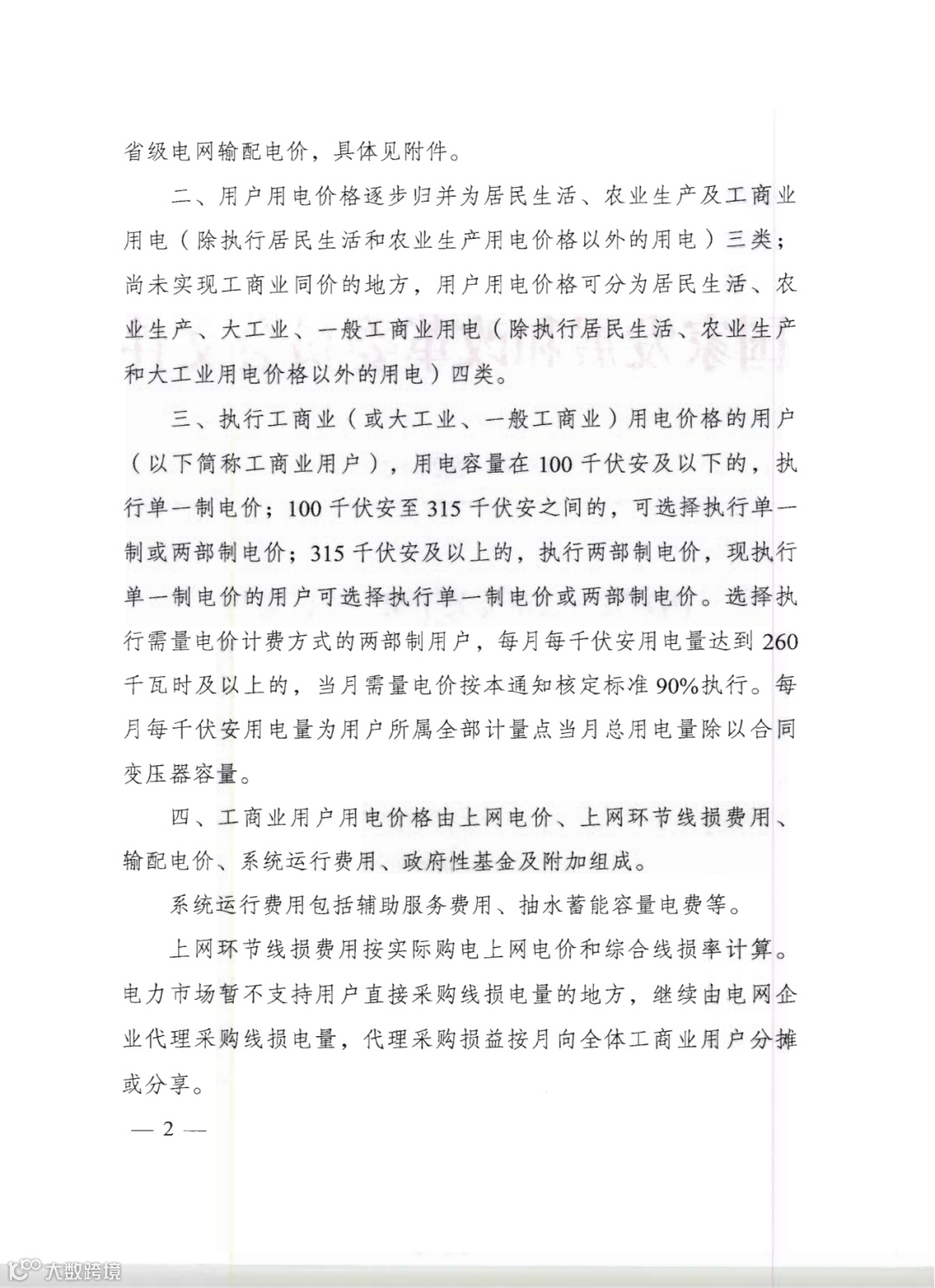 值得一提的是,选择执行需量电价计费方式的两部制用户,每月每千伏安用电量达到260千瓦时及以上的,当月需量电价按本通知核定标准90%执行。