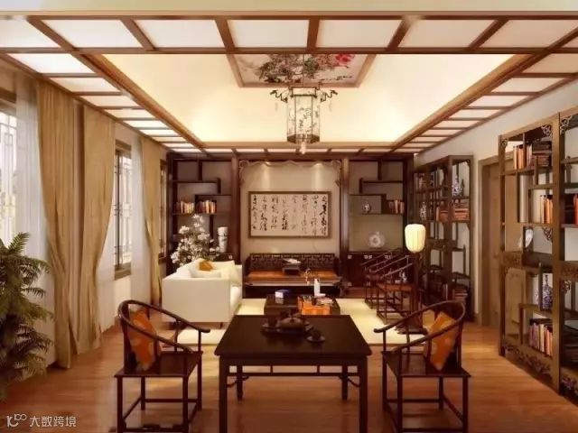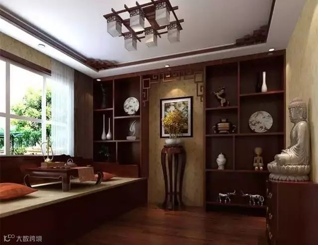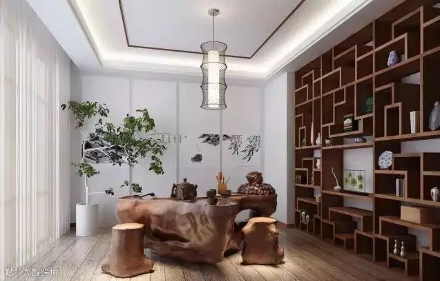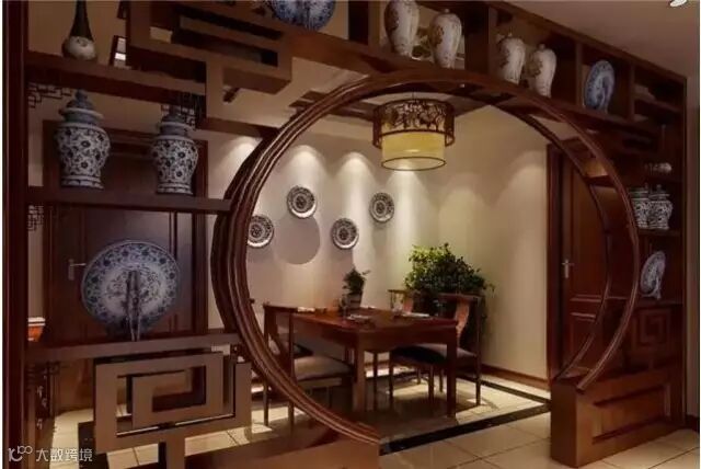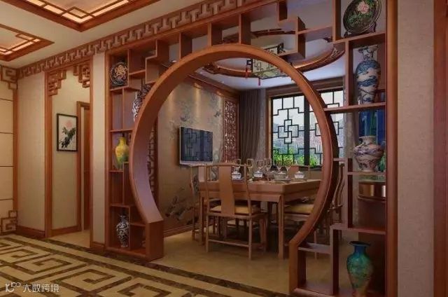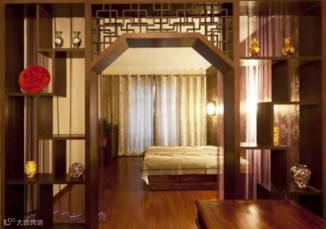 当然,博古架最主要作用还是用来分隔室内空间,即当隔断用。将博古架作为隔断,既能增强空间的层次感,又不会使中式家具显得空洞。如果不希望空间被完全隔断,而希望营造出隔而不断的开放式空间效果,博古架是再好不过的选择。