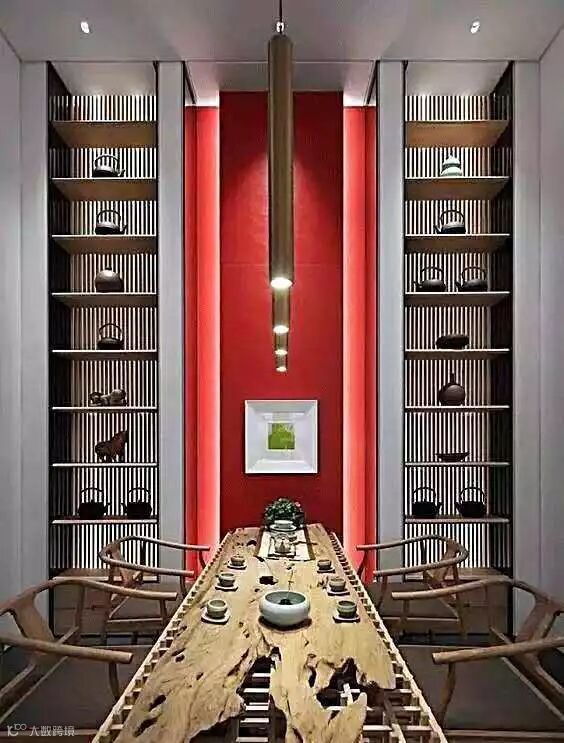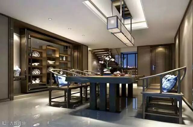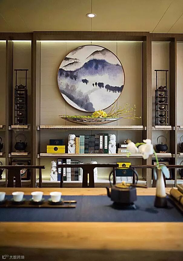 一种中式文化意蕴的茶室,主要是营造了一个安闲舒适、简洁淡雅的氛围,符合优雅文人的气质,中和了浮躁的个性,有利于现代人修身养性。另一方面,近距离的喝茶行为更是促进了人与人之间的沟通,轻松惬意。