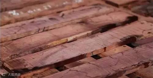 三曰“泡”。就是把原木或板材、方子扔到水里面浸泡。泡他个一周、两周,甚至泡一个月,捞上来按自然风干的方法码垛起来,经过完全自然风干再使用。或是泡过后送进烤房熏烤,另有一种老办法可以加快去性的