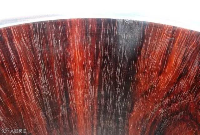 微凹黄檀常见主色调为桔红褐色,而交趾黄檀的常见主色调为朱红色带有黑色条纹。