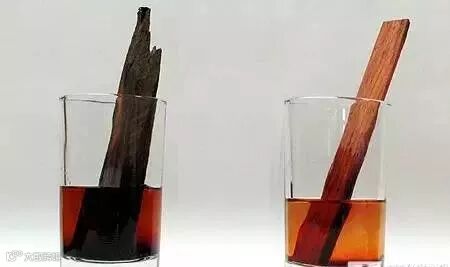 巴里黄檀(左)和交趾黄檀(右)初浸入酒精的颜色对比