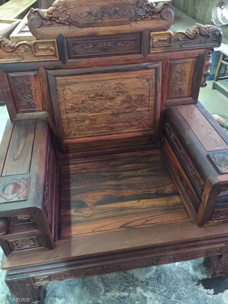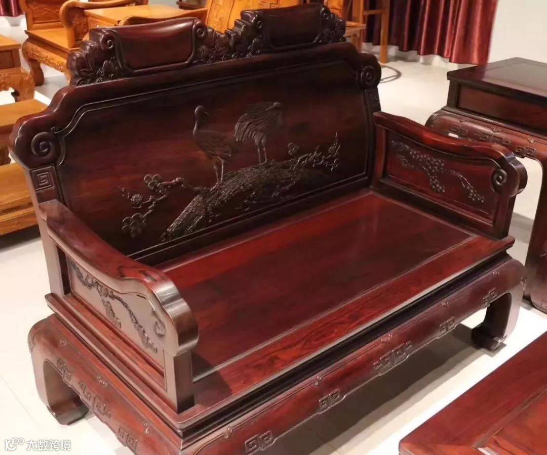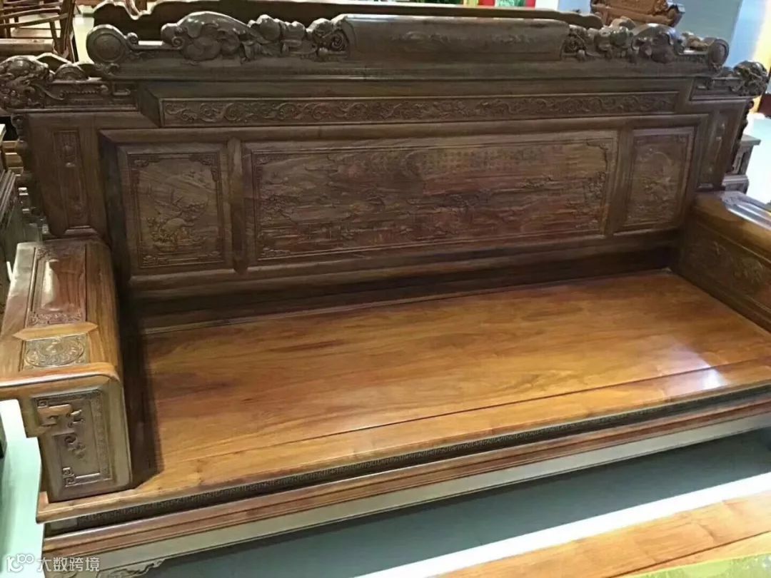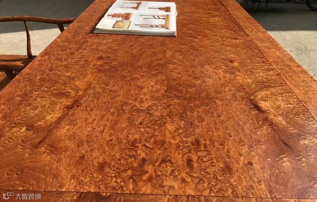 主要问题是料的口径较小,普遍比大红酸枝还要小一圈,市场上常见的普遍20公分左右口径,所以成品家具普遍拼板顺色较多,达到收藏级的较少。