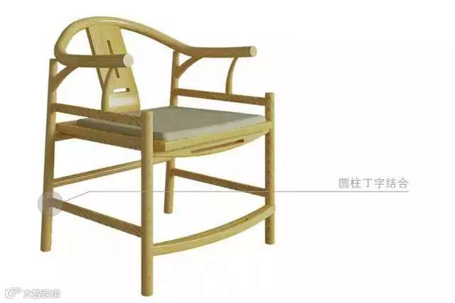 椅子管脚枨与凳椅的腿足相交处,四出头官帽椅的搭脑、扶手和腿足的相交处等都可以看到圆柱丁字结合的例子。圆柱丁字结合的造型比较简约,在新中式家具中经常被用到。