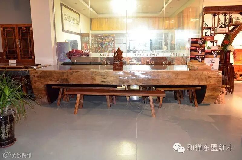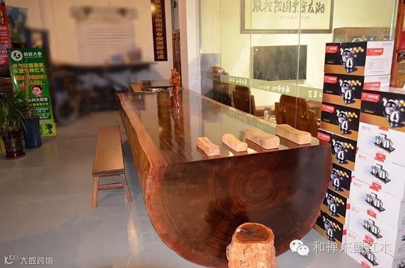此金丝柚经过成百上千年的风吹雨打,在原始森林中吸收着大地的养分和日月的精华,使它充满了灵气,据大师所言:此树乃灵物,可招财驱邪,镇宅安户。是和禅东盟红木的镇店之宝!