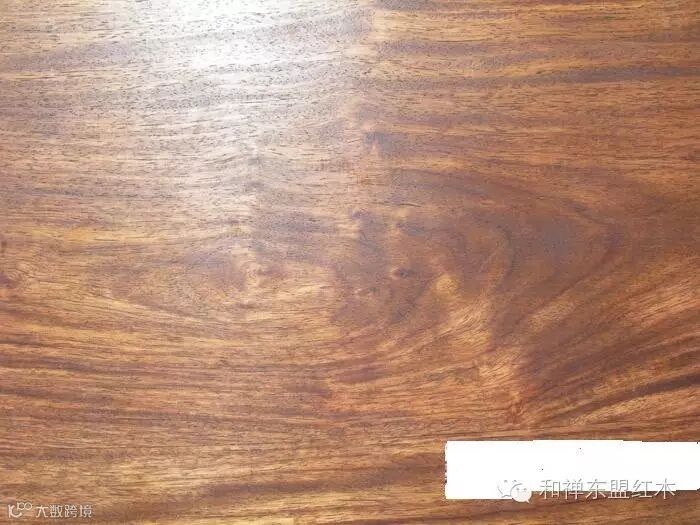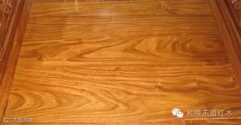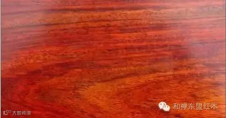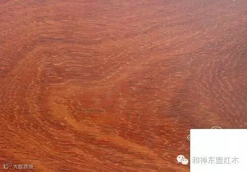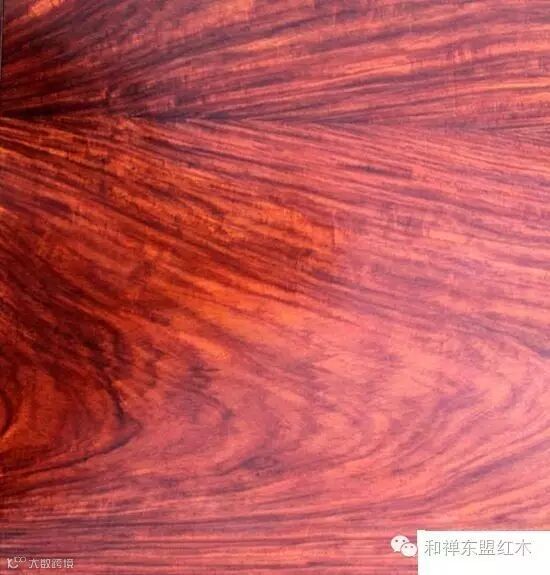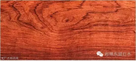 6、缅甸花梨(下图):豆科,蝶形花亚科,紫檀属,花梨木类,产于中南半岛,泰国,缅甸,老挝。心材桔红,砖红或紫红色,常带深色条纹,木屑水浸出液黄褐色,有荧光现象,香气浓郁,结构细腻,纹理交错。