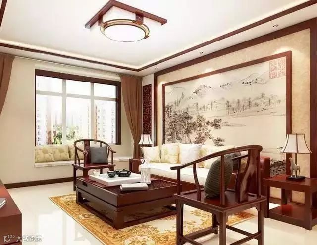 简单的新中式+明清圈椅对摆,好看的很。